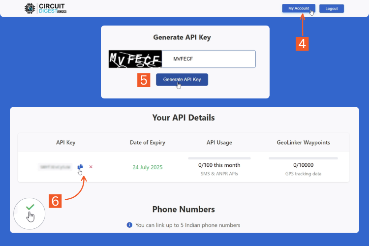 대부분의 CircuitDigest Cloud API와 마찬가지로 GeoLinker도 권한 부여를 위해 API 키가 필요합니다. 무료 API 키를 받으려면 아래 단계를 따르세요.