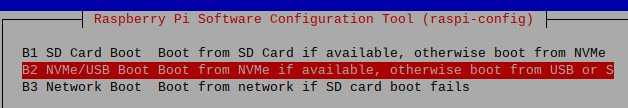 raspi-config를 사용하여 부팅 순서를 NVMe로 변경