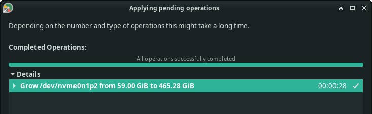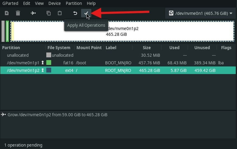 새 드라이브가 SSD보다 큰 경우 사용 가능한 모든 여유 공간을 활용하려면 루트 파티션을 확장해야 합니다.