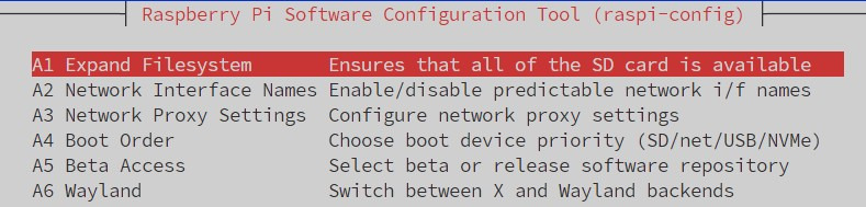 하지만 만약 자동으로 처리되지 않았다면 raspi-config를 사용하여 공간을 확장할 수 있습니다 .