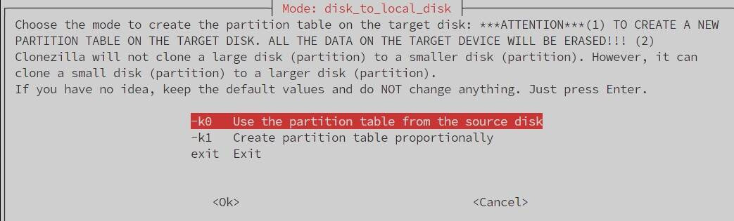 원본 디스크의 파티션 테이블을 사용하세요 :