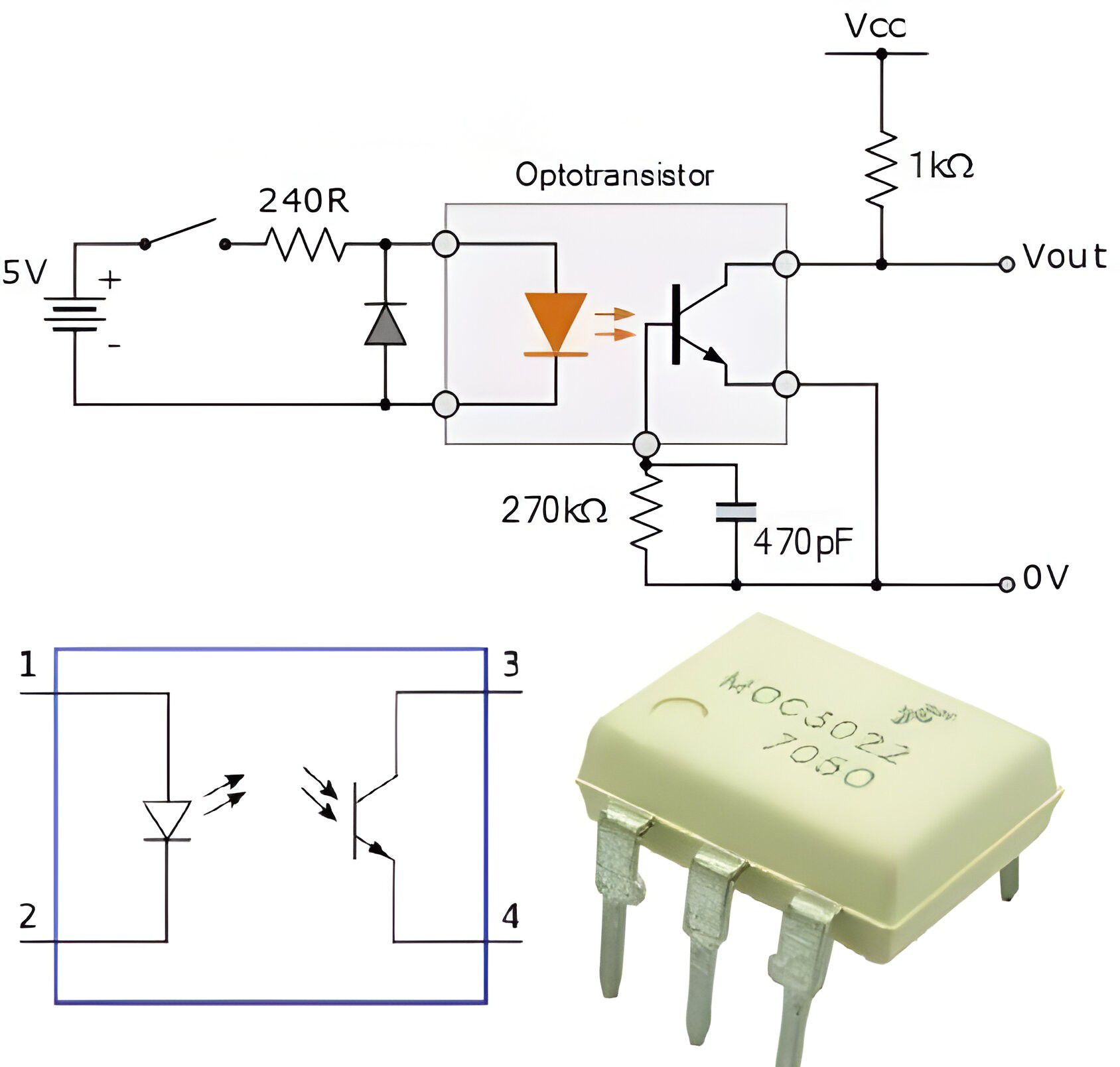 이것은 MOC3022 유형의 부품, 즉 전기적 직접 연결이 아닌 빛을 통해 입력 및 출력 회로를 분리(절연)하는 전자 장치를 사용하여 옵토커플러가 어떻게 작동하는지 설명합니다.