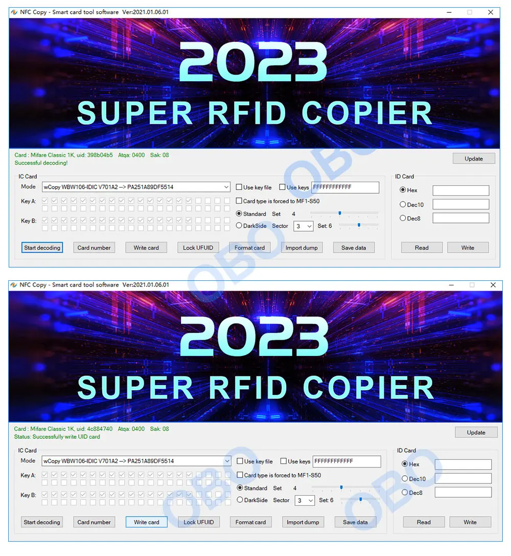 7) UID FUID CUID UFUID IC 반암호화 카드, 대부분의 IC 전체 암호화 카드를 지원합니다.
