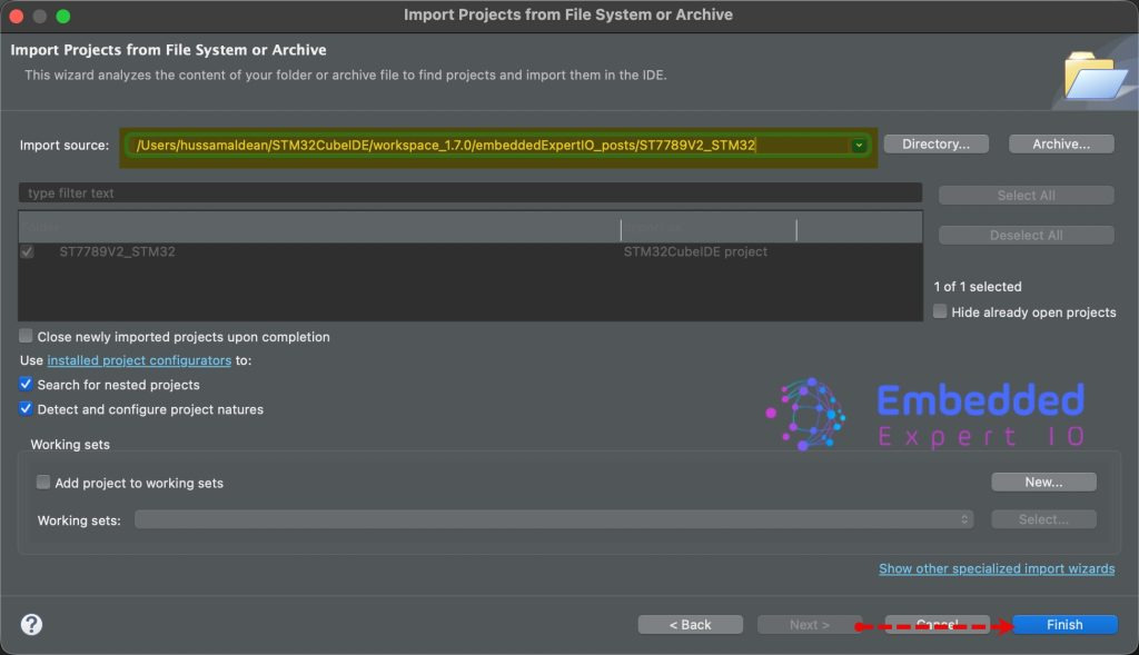 다음으로, .ioc 파일이 있는 폴더를 선택하고 다음과 같이 마침을 클릭합니다.