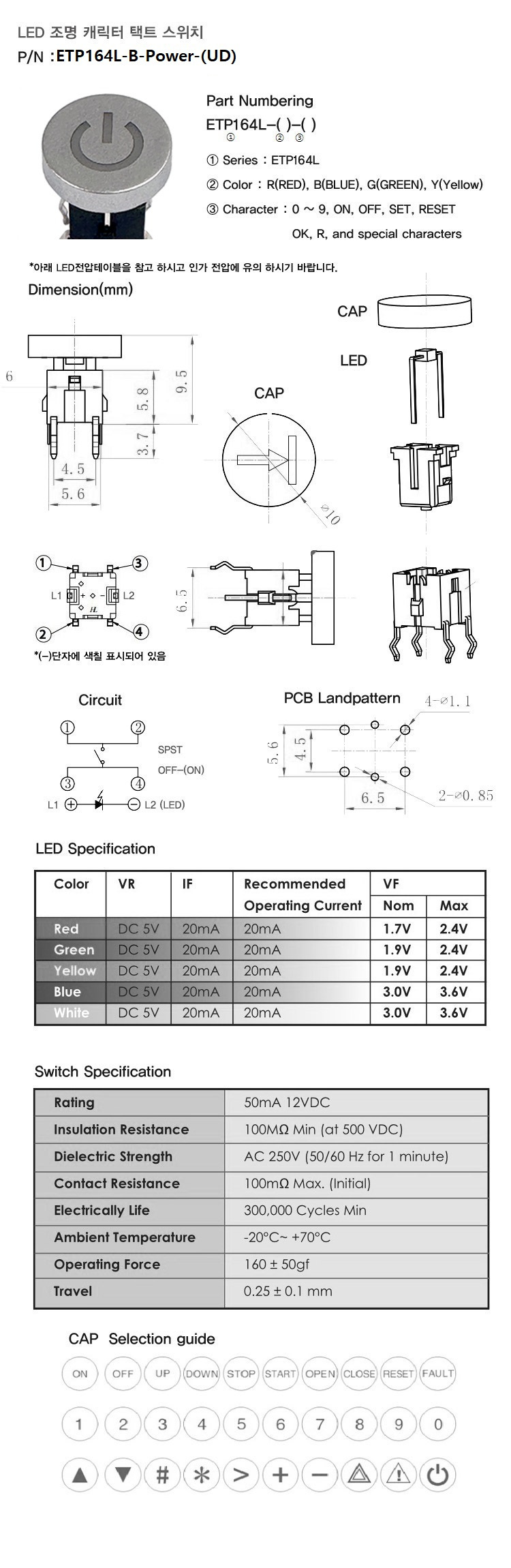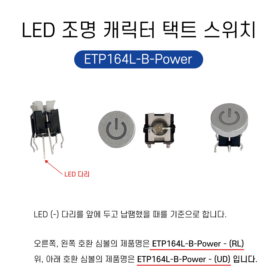 심볼과 6*6mm 조명 택트스위치 스위치 색상 : Red / Yellow / Blue / Green 선택 가능합니다.