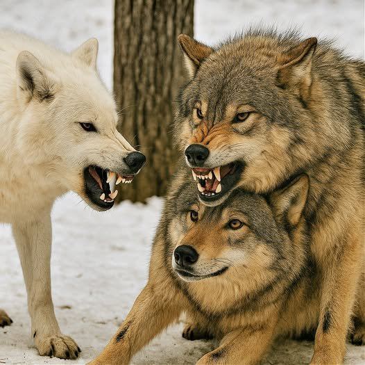 싸움이 벌어지면 암컷 늑대는 수컷 늑대 곁에서 침착하고 두려움 없이 곁을 지킵니다. 수컷 늑대를 전적으로 신뢰하며, 그의 힘이 서로를 지켜줄 것이라는 것을 알고 있습니다. 수컷 늑대에게는 규칙이 있습니다. 절대 암컷을 해치지 않는다는 것입니다. 그래서 암컷 늑대는 수컷 곁에 있으면 안전합니다. 하지만 수컷 늑대는 단순히 숨는 것이 아니라, 도움을 주고 있습니다.