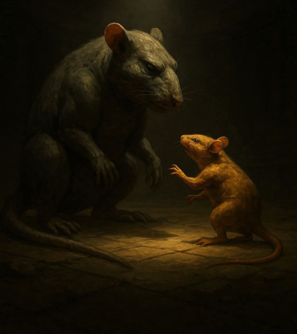이는 큰 쥐가 전략적으로 패배해야 함을 의미한다. 약해서가 아니라 지배의 경제학을 이해했기 때문이다.
