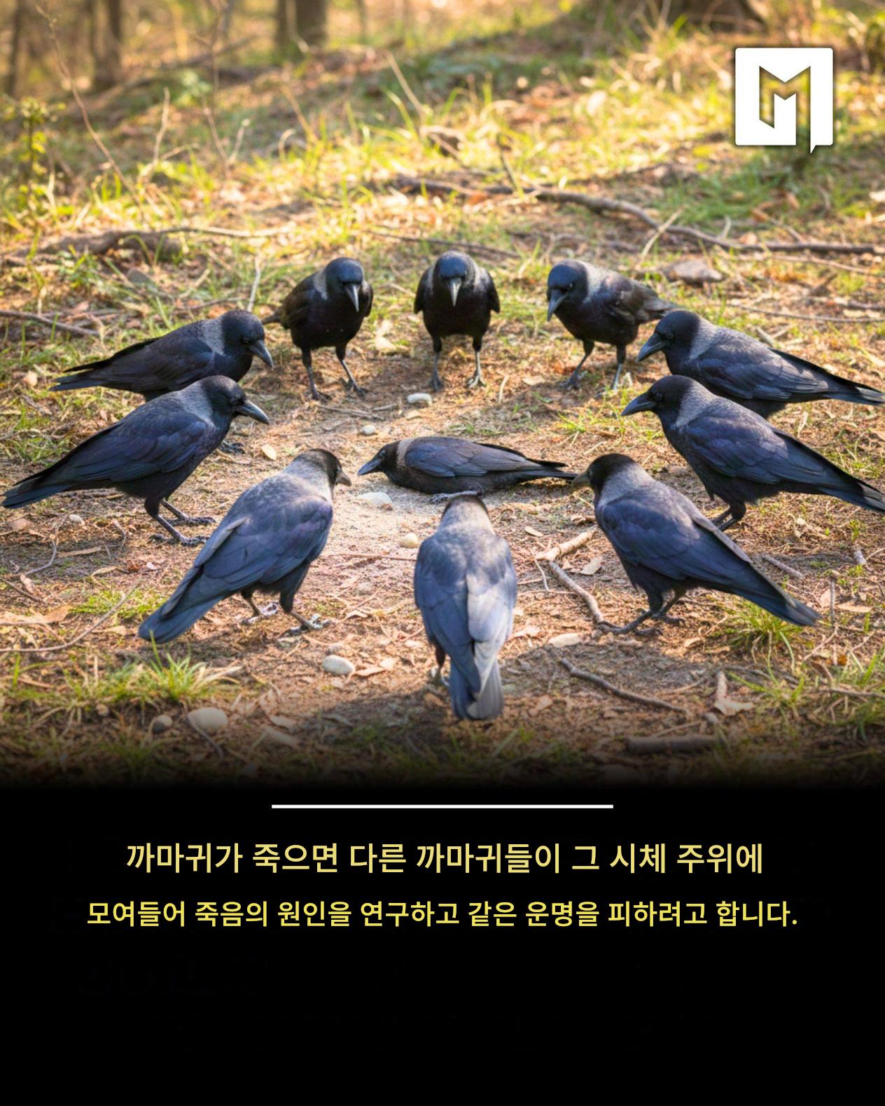 까마귀는 대부분의 사람들이 생각하는 것보다 훨씬 똑똑하며, 죽음에 대한 그들의 행동이 이를 증명한다. 까마귀 한 마리가 죽으면 다른 까마귀들은 그저 무시하지 않는다. 그들은 시체 주위에 모여 서로에게 울음소리를 내며 소통한다.