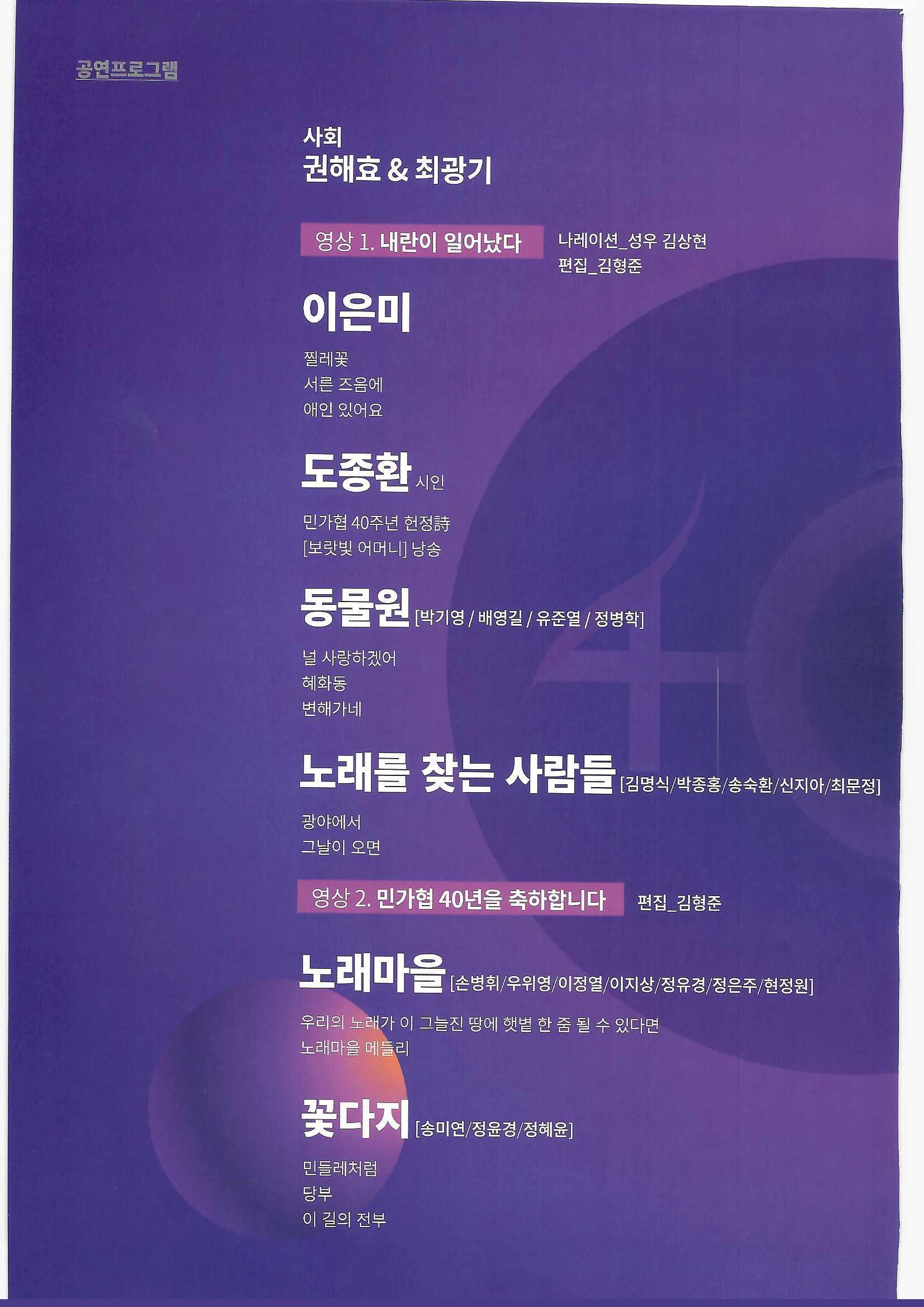- 민가협 40주년 기념 헌정공연 (12.13 / 한양대학교 올림픽체육관)