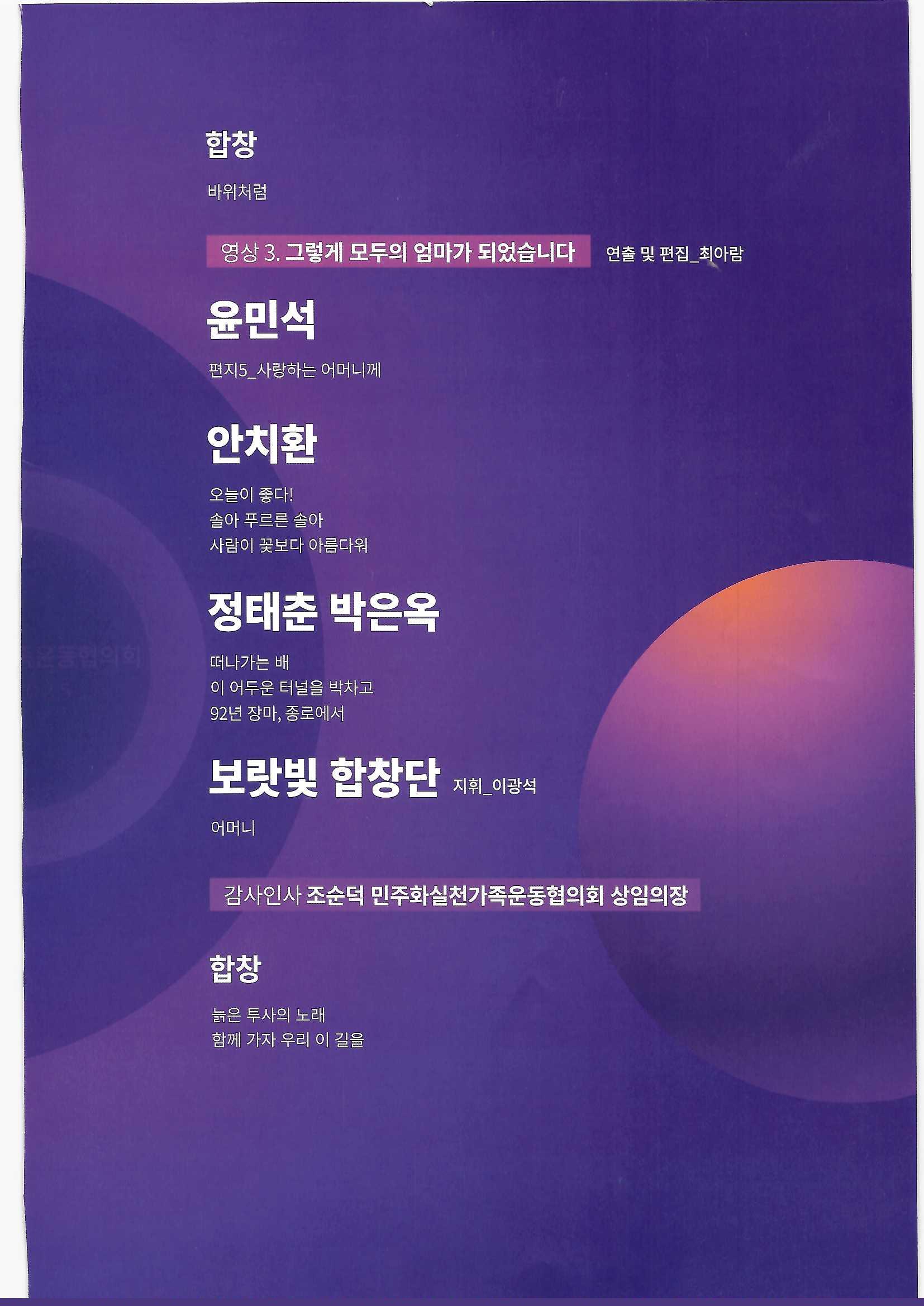 행사명: 민가협 40주년 특별 헌정공연 - 어머니를 위한 시와 노래의 밤