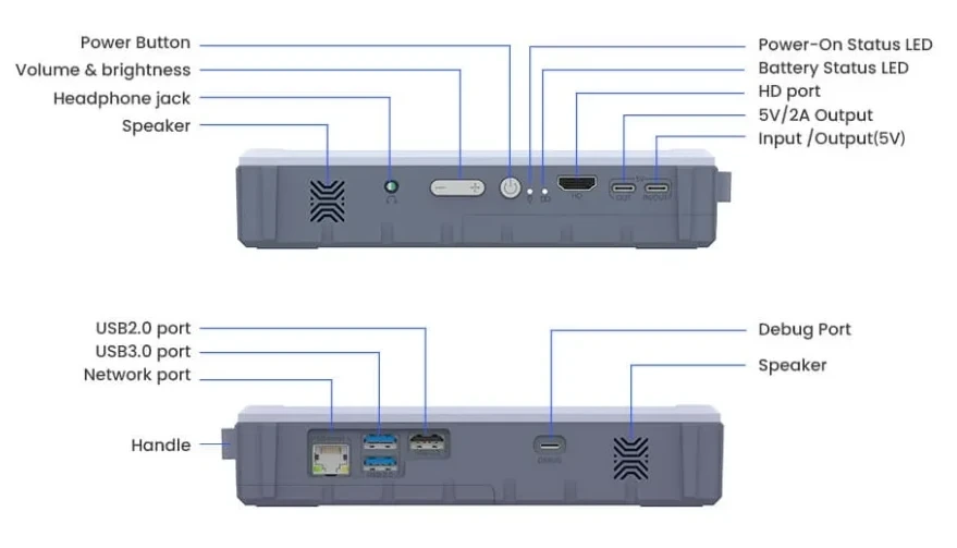 - USB Type-C port for data and power input/output port (5V/5A input, 5V/2A output, PD supported)