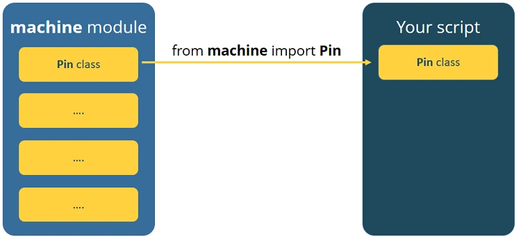 대부분의 프로그램에서는 하나의 모듈에 있는 모든 클래스가 필요하지 않습니다. 단 하나의 클래스만 가져오고 싶을 수도 있습니다. 예를 들어, 머신 모듈에서 Pin 클래스만 가져오는 경우처럼 말입니다.