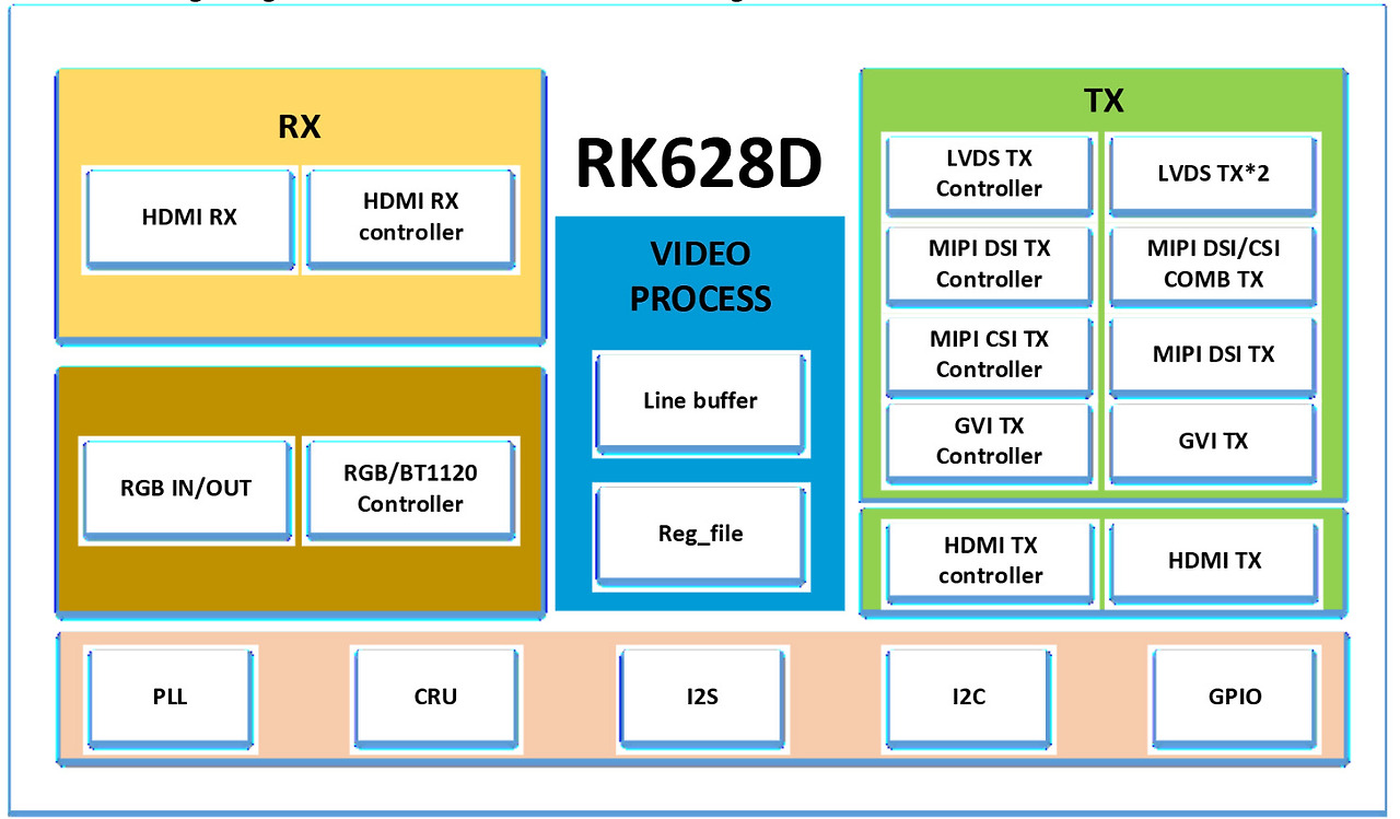 메인 칩 – Rockchip RK628D HDMI-MIPI CSI-2 변환기
