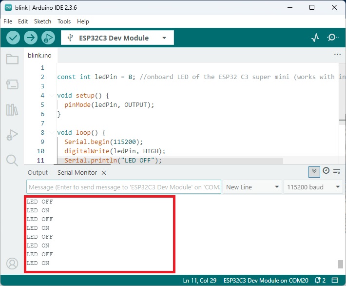 참고 : ESP32-C3 Super Mini는 절전 모드에서 깨어난 후 시리얼 모니터에 자동으로 연결되지 않아 시리얼 모니터를 사용할 수 없었습니다.