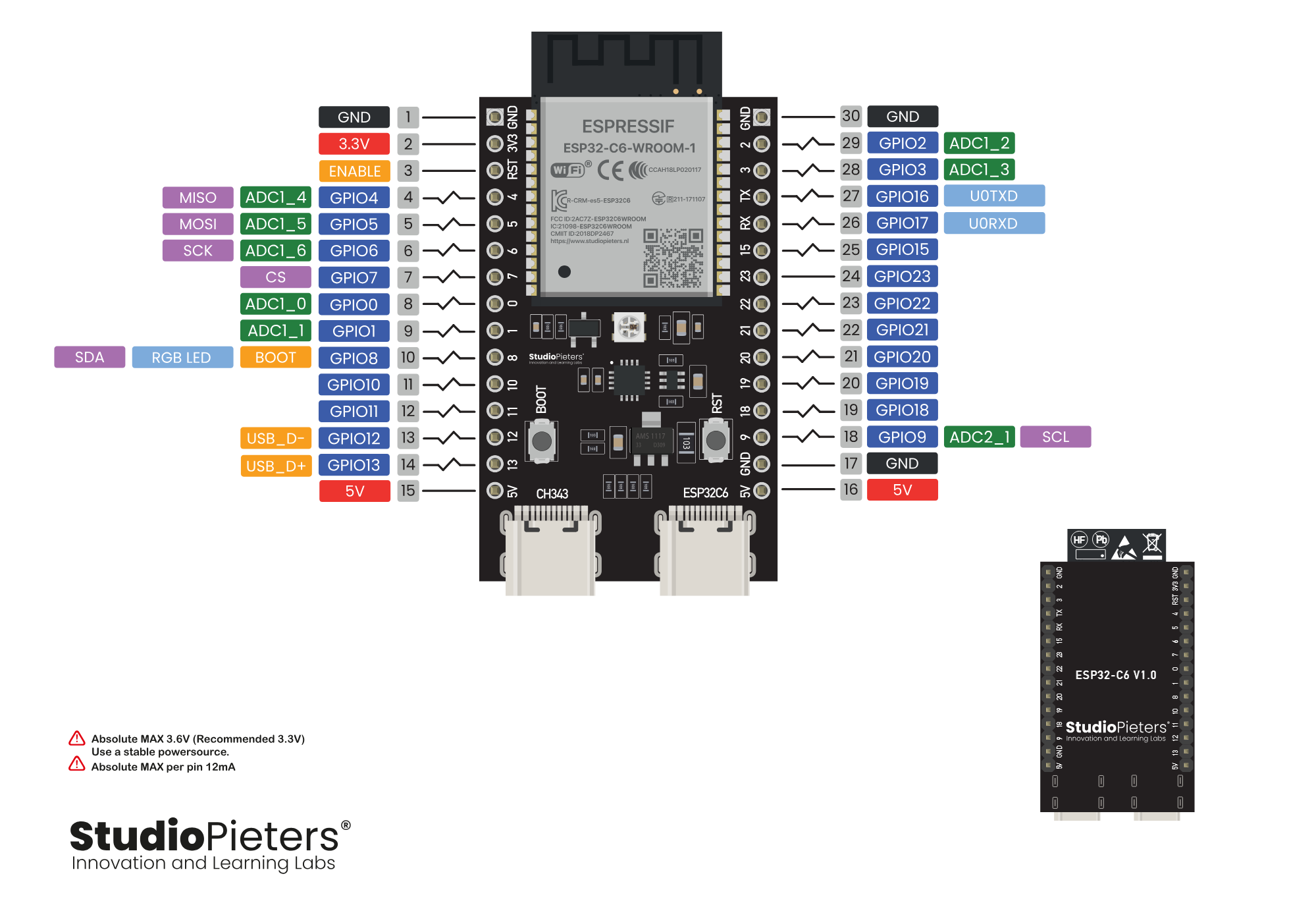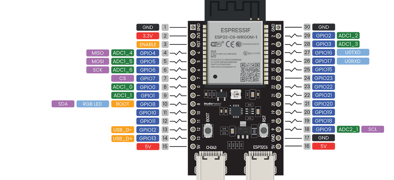 ESP32-C6 핀 배치도를 고해상도로 여기에서 무료로 다운로드하세요!