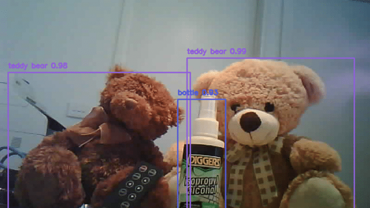 감지된 각 객체에 대해 경계 상자와 레이블을 프레임에 그립니다. 감지된 클래스/객체 이름과 신뢰도 점수가 표시됩니다.