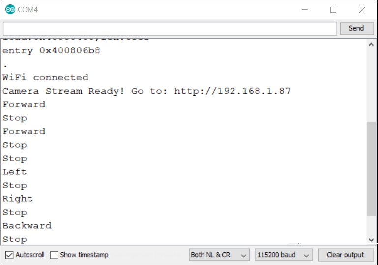 ESP32-CAM 원격 제어 로봇 시리얼 모니터 명령
