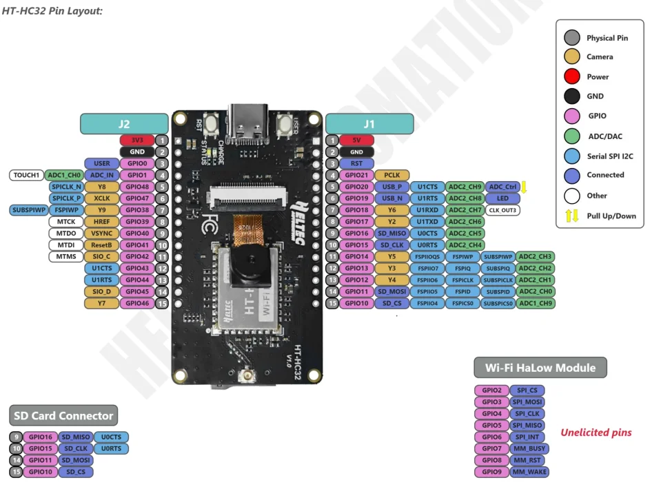 HT - HC32ESP32-S3 MCU와 Wi-Fi HaLow를 기반으로 한 카메라가 통합된 개발 보드입니다.