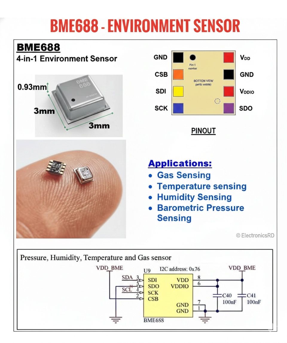 BME688은 온도, 습도, 기압 및 가스 농도를 하나의 칩으로 측정할 수 있는 소형 4-in-1 환경 센서입니다.