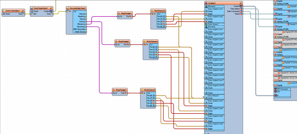 " MultiSource1 " 핀[Pin[4]]을 " Display1 " 핀[Elements.Draw Angled Line3.Clock] 에 연결합니다.