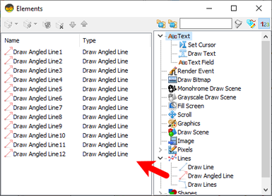 요소 창 에서 Draw Angled Line1 요소를 찾습니다 .
