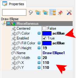 요소 창 에서 Draw Ellipse1 요소를 찾습니다 .