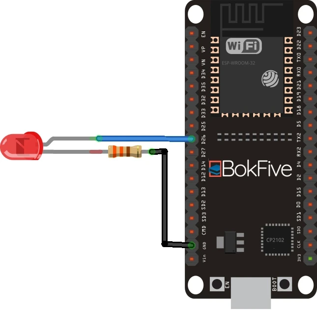 이 코드가 어떻게 작동하는지 테스트하려면 ESP32 에 이 코드를 업로드 하고 다음 회로도를 구성하십시오. 초 단위 시간(밀리초)도 수정할 수 있습니다.