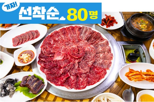 테이블당 한우모듬구이 600g+육사시미+육회+한우차돌백이샤브, 된장찌개+공기밥 (테이블당 154,000원)