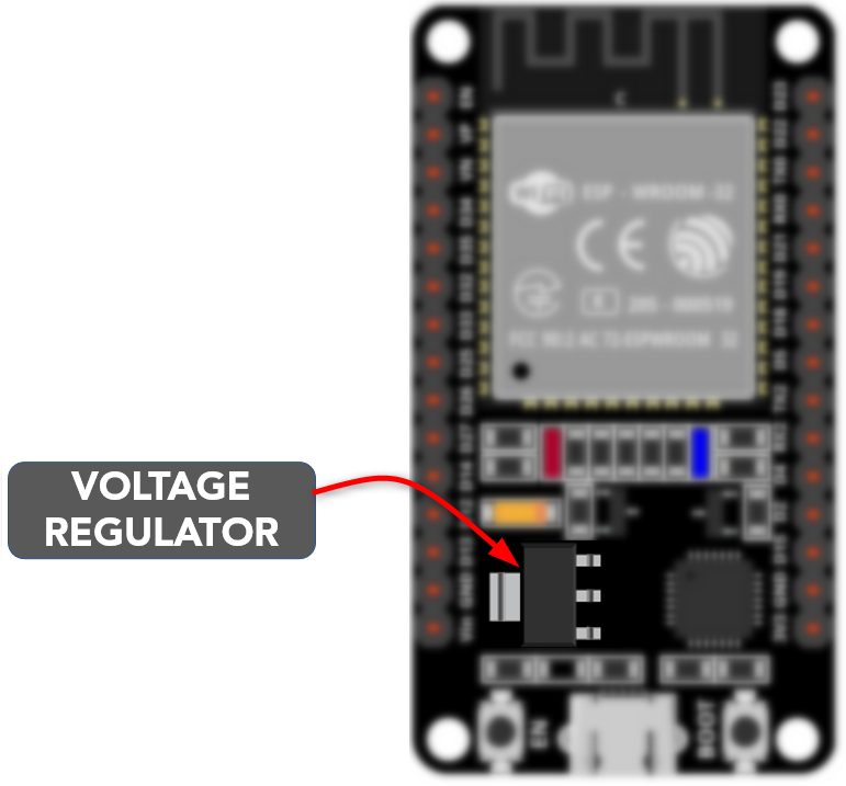 ESP32 및 아두이노와 같은 다른 마이크로컨트롤러 보드의 Vin 핀은 온보드 전압 레귤레이터에 연결되어 있습니다. Vin 핀에 연결된 전압은 먼저 레귤레이터를 거쳐 3.3V로 낮아진 후 ESP32 보드의 주변 장치로 공급됩니다.
