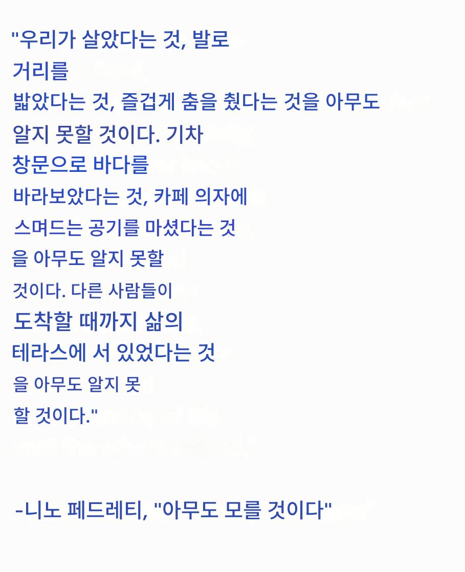 그러므로 나는 같은 시를 올리고 다른 사진을 올린다. 하지만 다른 사람도 알지 않는가? 바로 함께 있던 그 사람 말이다.