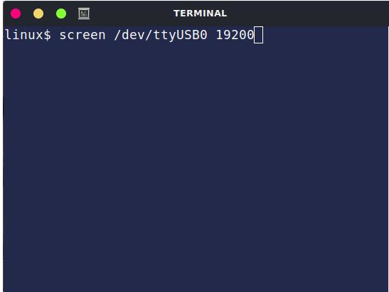 screen사용 중인 터미널 프로그램을 실행하세요 . 전송 속도를 19200으로 설정하세요. screen이 값은 명령줄 매개변수입니다.