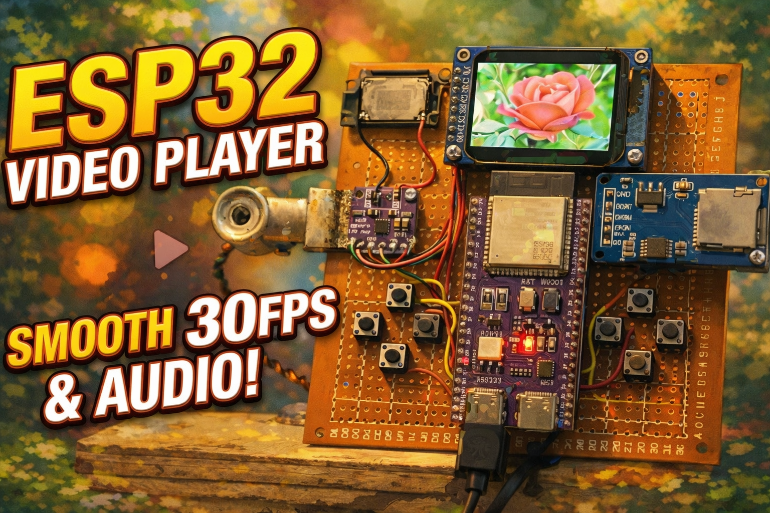 마이크로컨트롤러로 영상과 음성을 부드럽게 재생할 수 있을까요? 물론입니다. 이 프로젝트에서는 ESP32-S3의 성능을 최대한 활용하여 ST7789 디스플레이와 I2S 오디오를 사용하는 완벽한 비디오 플레이어를 제작해 봅니다.