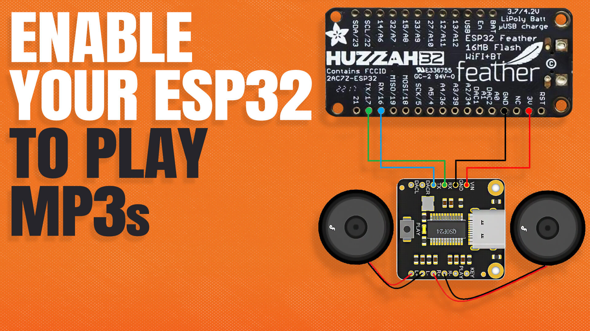SD 카드 모듈과 오디오 출력을 위한 I2S DAC(예: MAX98357A)이 필요합니다. [3, 5]