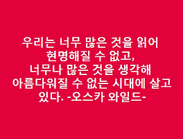 우리는 너무 많은 것을 읽어 현명해질 수 없고, 너무나 많은 것을 생각해 아름다워질 수 없는 시대에 살고 있다. -오스카 와일드- (0) | 2018.02.01 |