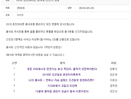 | 2018년 춘천마라톤 대회 참가 출사표 선정 기념~^^ (0) | 2018.09.26 |