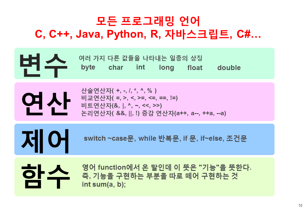사실 소프트웨어(프로그래밍이나 코딩 같은 말들로 바꾸면)를 배운다는 말은 위에 제시된 변수, 연산, 제어, 함수 배우는 겁니다. 그것들이 각각의 언어에서 어떻게 표현되고 사용하는 규칙을 배우는 것이죠. 그러니까 코딩을 배우거나 언어를 배우는 것이 소프트웨어를 배우는 것은 아닙니다. 문제 해결을 위한 논리적인 사고의 습득이 우선입니다. 논리적 사고방식의 교육을 진행하기 위한 여러가지 방법 중에 대표적으로 '코딩' 교육이 있습니다. 코딩의 사전적 의미는 프로그램 언어로 명령문을 만들어 프로그램을 만드는 것입니다. 전문적인 코딩은 어렵기도 하거니와 프로그래머와 같은 직업적 의미에서 사용되니까 그걸 교육하는 것은 힘듭니다. 소프트웨어 교육에서 말하는 코딩은 교육 도구로서의 의미입니다. 스크래치, 코두 등과 같은 기초적인 프로그램을 활용하면 명령어를 쉽게 넣을 수 있습니다. 명령의 구성과 나열로 문제를 해결하는 과정에 익숙하면 프로그램에 대해 잘 알 수 있습니다. 물론 소프트웨어가 어떻게 구성되고 무엇이 필요한지도 알 수 있습니다. 초등학교에서 비록 17시간이지만 많은 변화들이 있을 겁니다. 스스로 자동화에 신경을 쓸 겁니다. 그리고 그런 작은 자동화 프로그램이 모여 세계적인 기업들이 생겨나게 되겠지요.