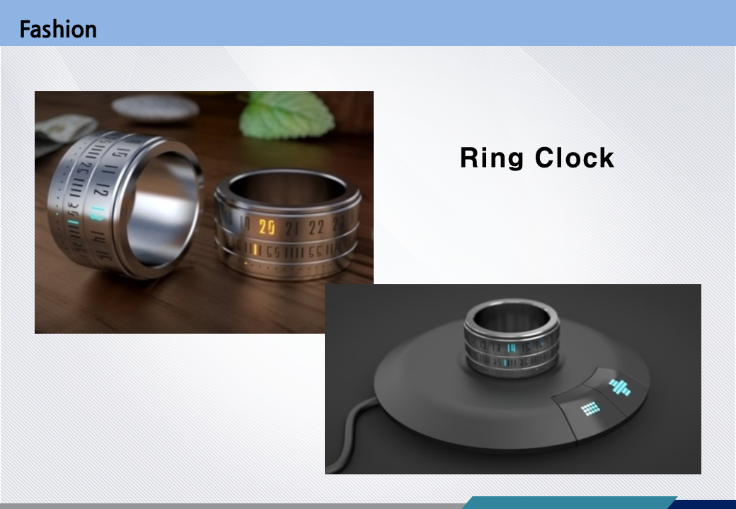 다음으로 웨어러블 디바이스의 개발동향을 살펴봅시다. 웨어러블 디바이스는 사실 시장에서 현재까지는 실패한 분야입니다. 왜 실패했는지 그게 중요한데 아직 특별히 정리한 것은 없습니다. 저도 알아보겟습니다. 사람들이 쉽게 실증을 내고, 생각만큼 유용하지 않다는 것은 예상할 수 있지만 그런 이유를 분석할 필요가 있습니다.