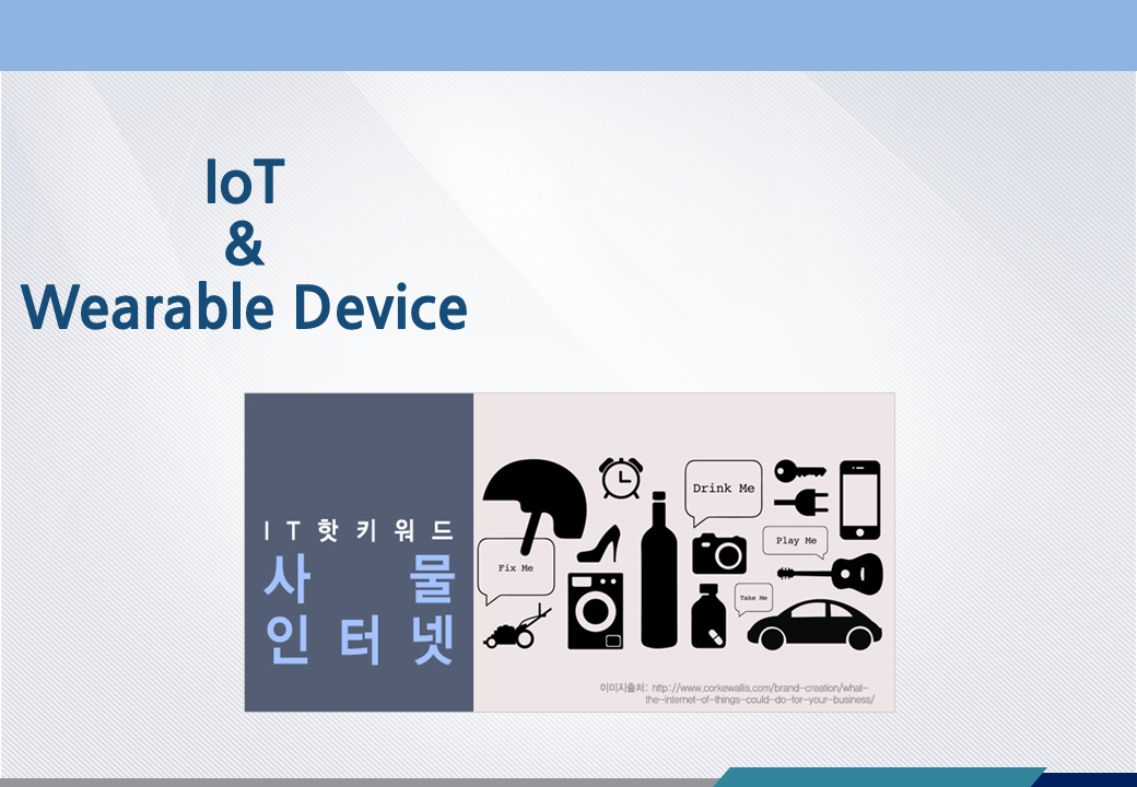 사물인터넷의 이론이라 할 수 있는 IoT 개요, 기반기술, Product Review 까지 하고 웨어러블 디바이스 볼 차례입니다. 오늘까지 입문 편을 마치고 다음 주부터는 라즈베리파이 실습이 시작되니 반장은 꼭 준비 좀 해주세요.