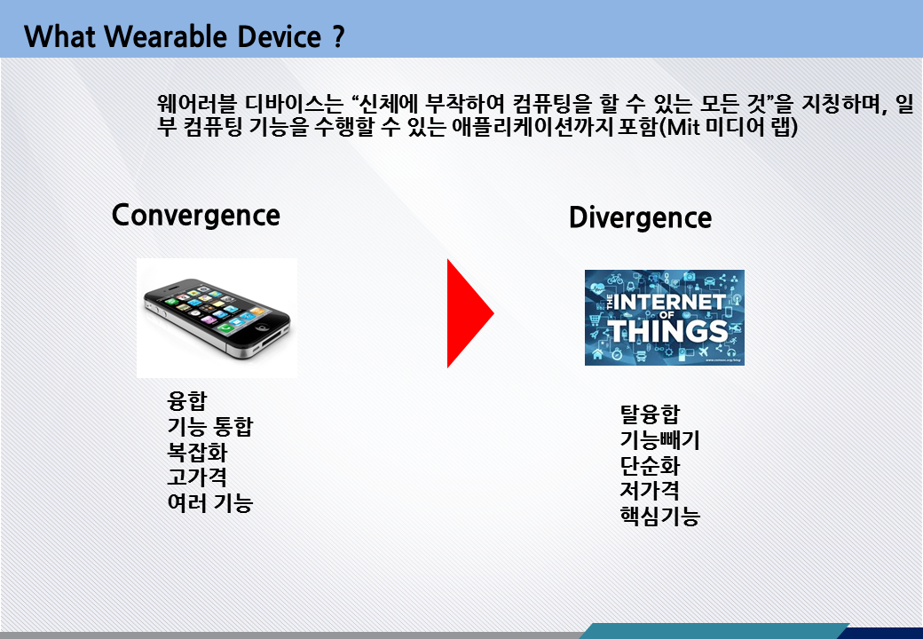 다음으로 웨어러블 디바이스의 개발동향을 살펴봅시다. 웨어러블 디바이스는 사실 시장에서 현재까지는 실패한 분야입니다. 왜 실패했는지 그게 중요한데 아직 특별히 정리한 것은 없습니다. 저도 알아보겟습니다. 사람들이 쉽게 실증을 내고, 생각만큼 유용하지 않다는 것은 예상할 수 있지만 그런 이유를 분석할 필요가 있습니다.
