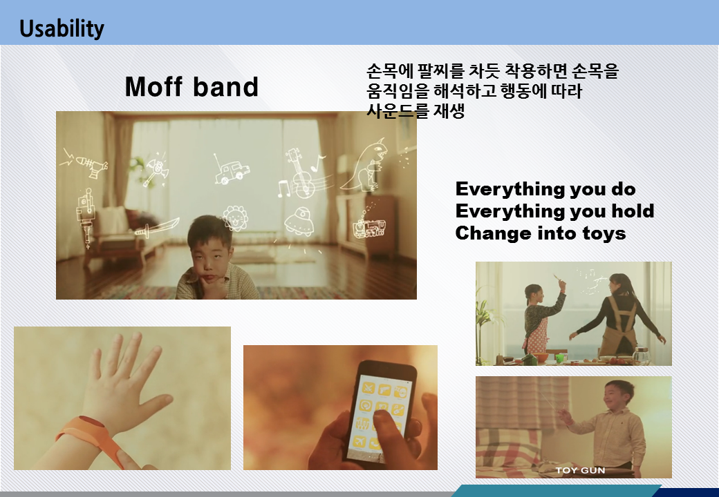 - 미아방지를 위한 스마트 밴드, 건강 관리를 위한 체온계 등의 이동통신 기반 의료 기기 형태 등의 아동 전용 웨어러블 디바이스 개발중임