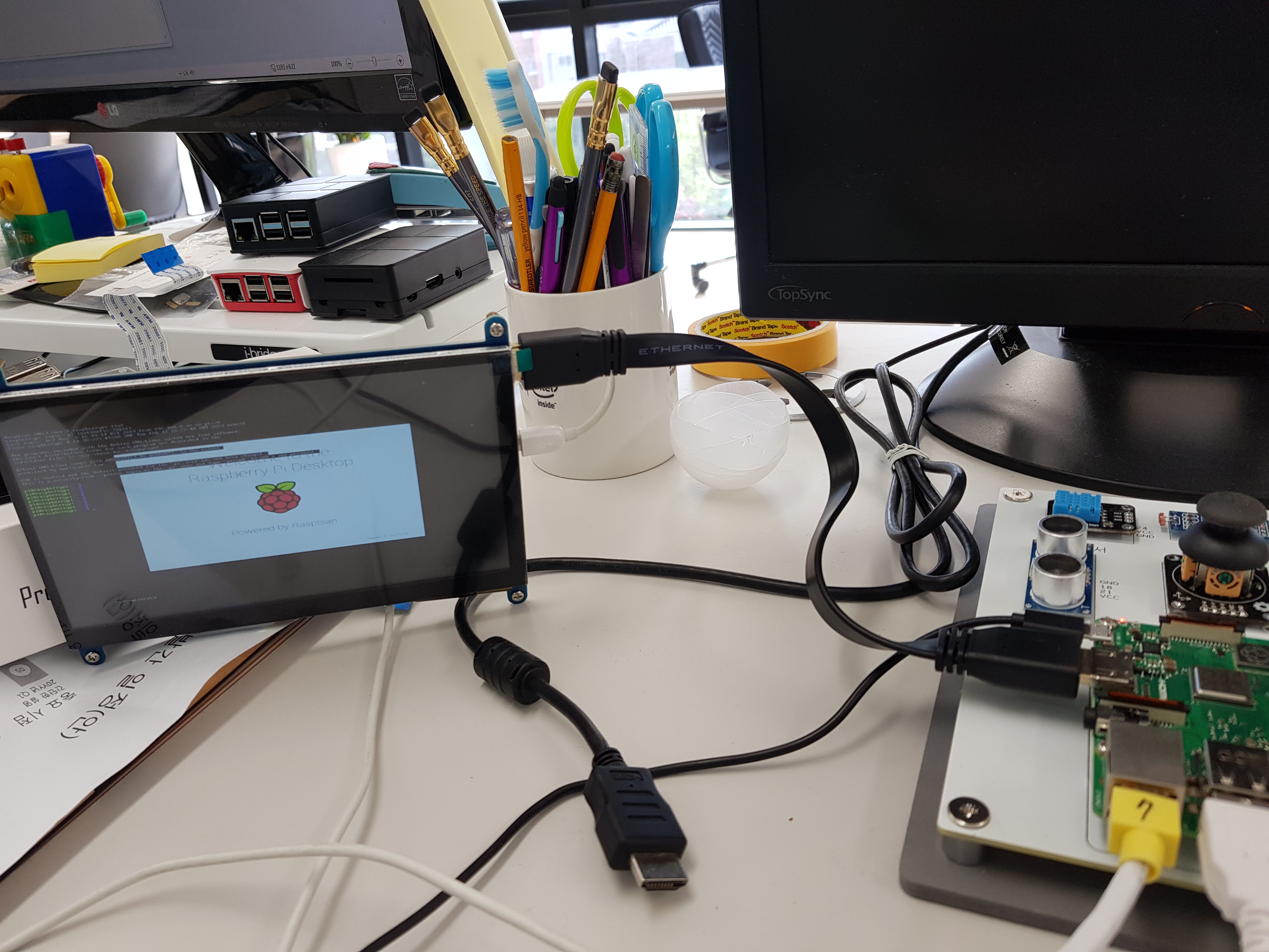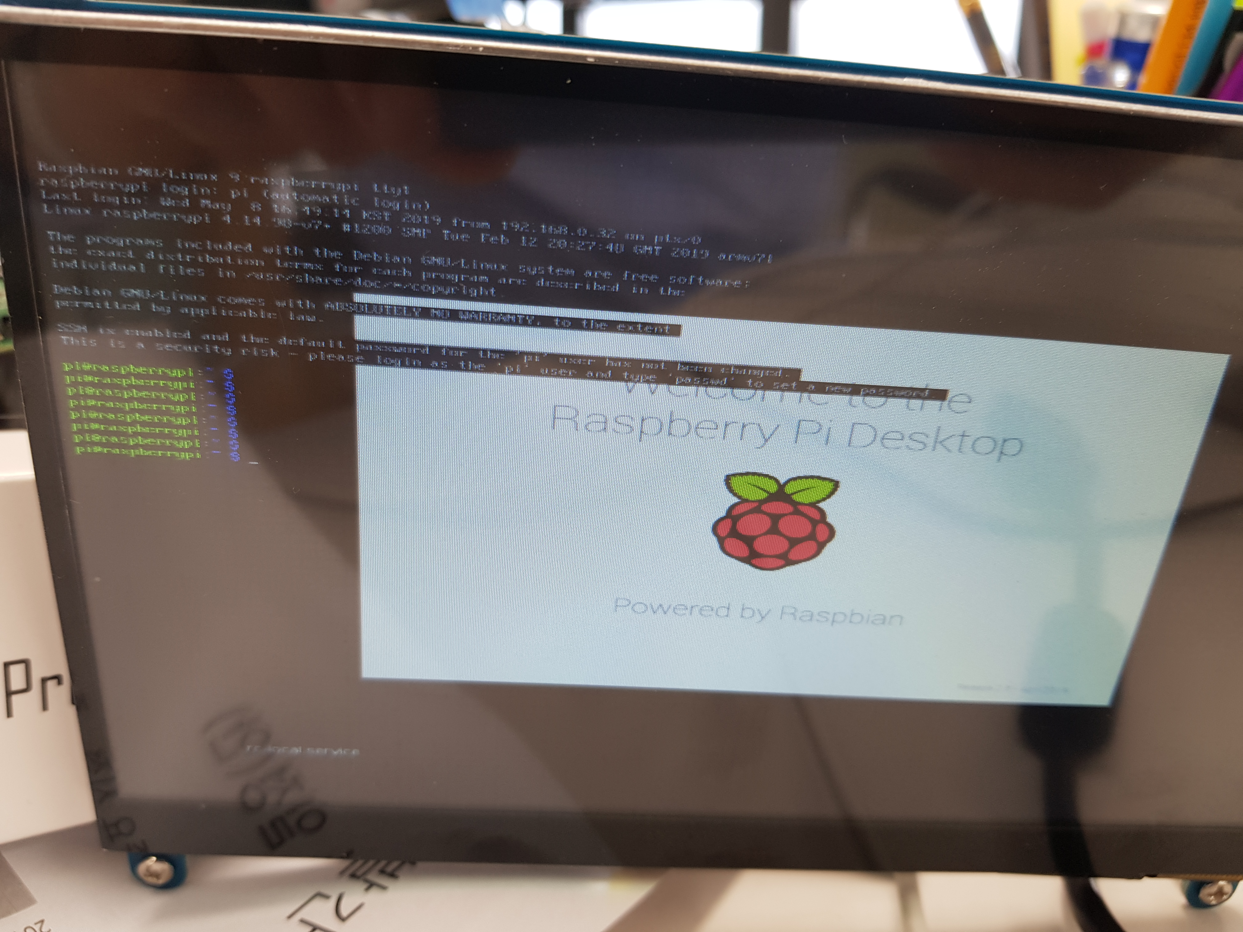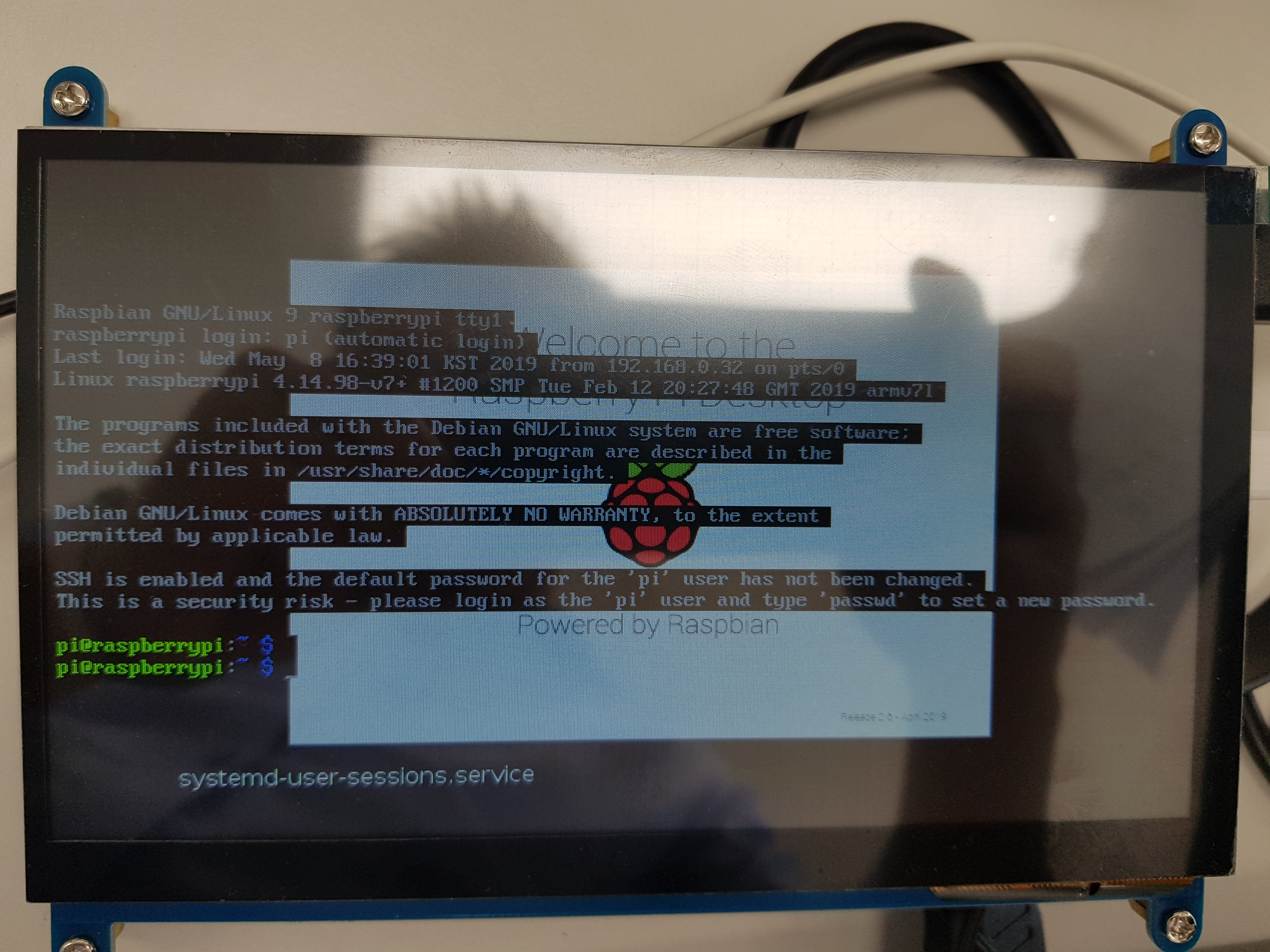 이 상태에서 즉, 라즈베리파이는 일반 모니터에 연결되어 있는 상태에서 $sudo reboot 명령어를 사용하여 리부팅을 한다. 잠시 기다렸다가 부팅이 된 상태에서 라즈베리파이의 HDMI 포트 케이블을 제거하고 7inch LCD HDMI 포트와 라즈베리파이 HDMI 포트를 연결한다. 그러면 화면이 나온다. 라즈베리파이를 리부팅하면 절대 화면은 안 나온다.