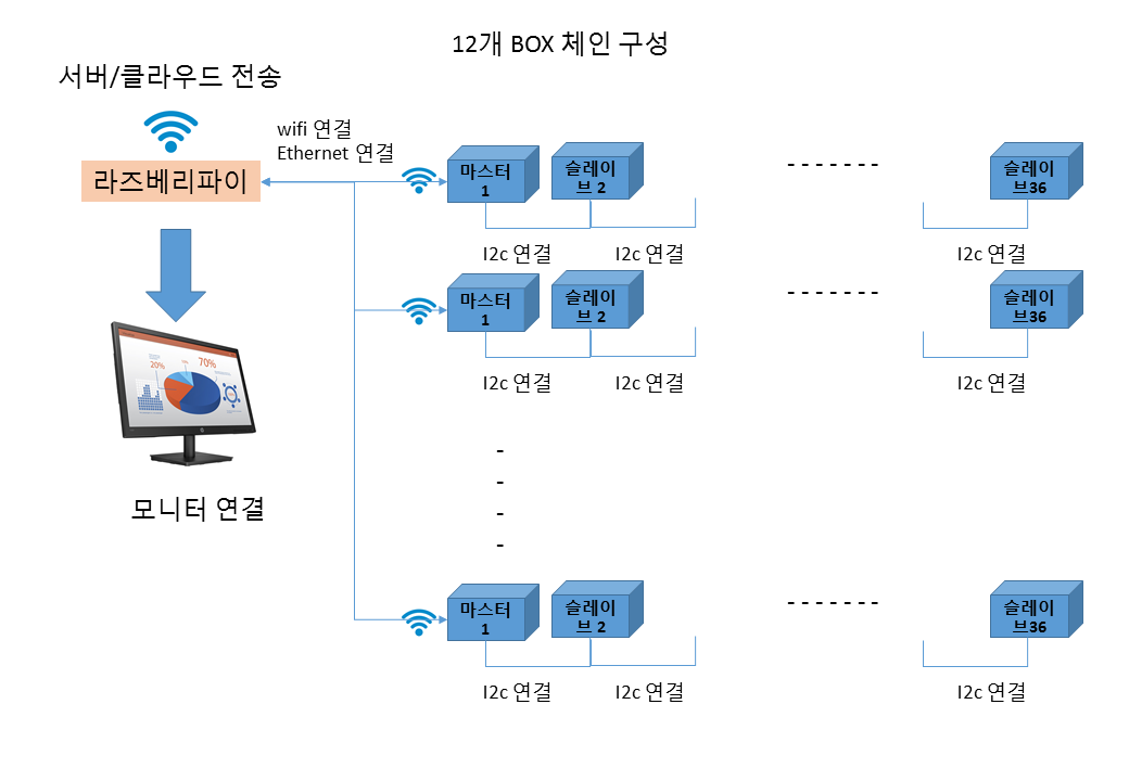 개발 의뢰로 고민해 본 멀티 박스 구현 방안을 정리했다. 실제 이렇게 하면 되는지는 잘 모르겠다. 연결 방식에 따라 각각의 박스 I2C 인터페이스는 이론상 127개까지 연결된다. IP 주소 연결은 이론상 255개까지 연결할 수 있다. IP 연결 이런 식이다. '이론상'이라는 말은 그 말에서 이미 불가능하고, 안 된다는 사실을 말해준다. 이론상 가능한 완벽한 육아, 완벽한 직장생활, 완벽한 인간관계는 사실상 불가능하다.