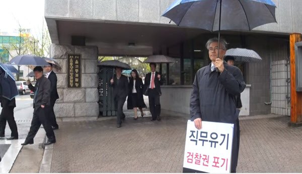 2011.4.26 검찰청 앞에서 조현호 경찰청장 소환조사를 촉구하는 1인 시위를 하고 있는 문재인 당시 노무현재단 이사장
