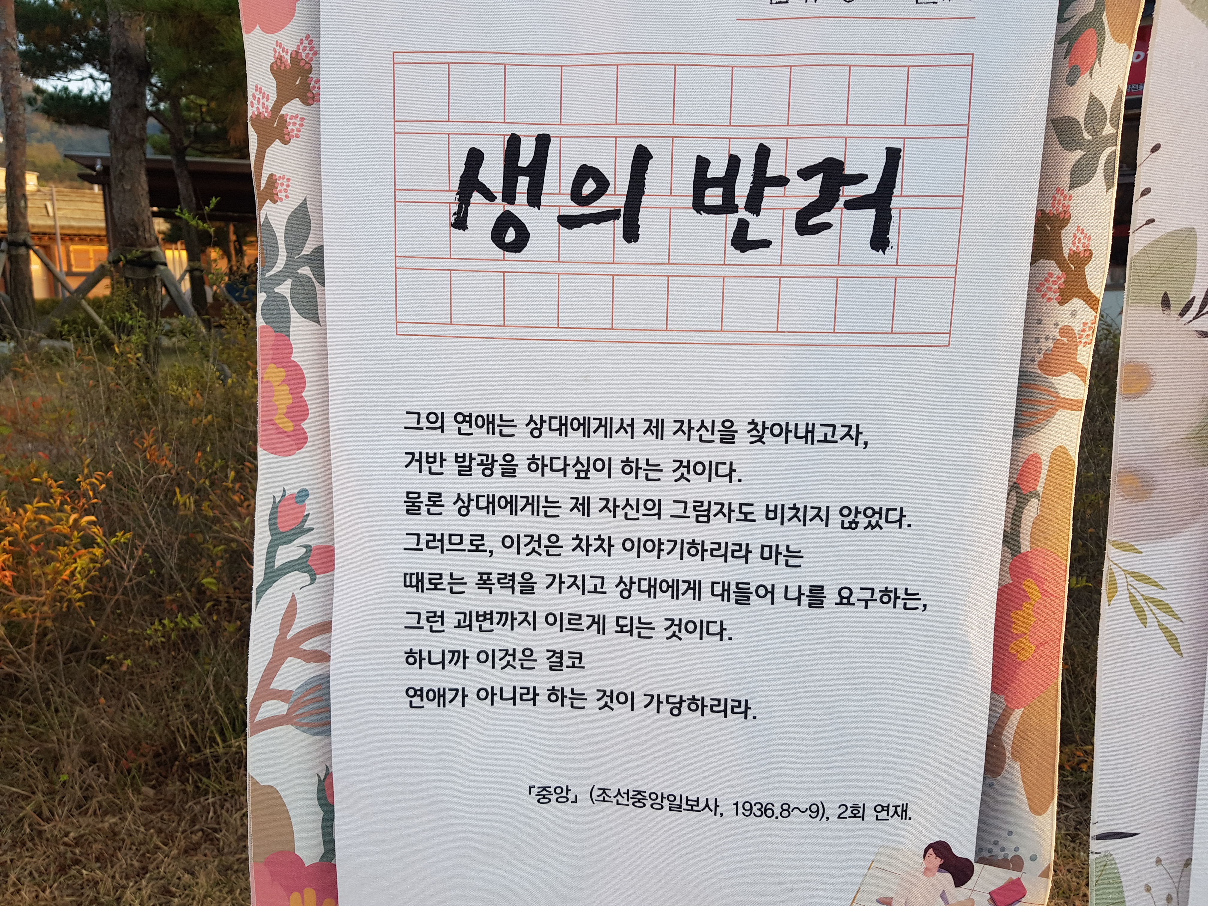 2017년부터 춘천마라톤을 달리기 시작했으니 이번이 3번 째다. 장거리 달리기를 마치면 이곳으로 온지도 세 번 째다. 숯불에 굽는 닭갈비는 철판에 볶는 것보다 훨씬 맛있다. 근처에 김유정 문학관은 가을을 느끼기에는 더없이 좋은 곳이다. 뒤풀이를 마치고 나오는데 당연히 주차장 방면으로 나가야 하는데 일찍 나와서 갑자기 반대편으로 가고 싶었다. 김유정 역을 만나고 단풍을 만나고 역시 따로 놀기를 좋아해야 한다. 한가족 숯불닭갈비 식당에서 나오자마자 보통 우회전해서 주차장으로 가는데, 그러지 말고 나오자마자 좌회전해서 걸어 내려가면 정말 가을을 만난다. -見河-