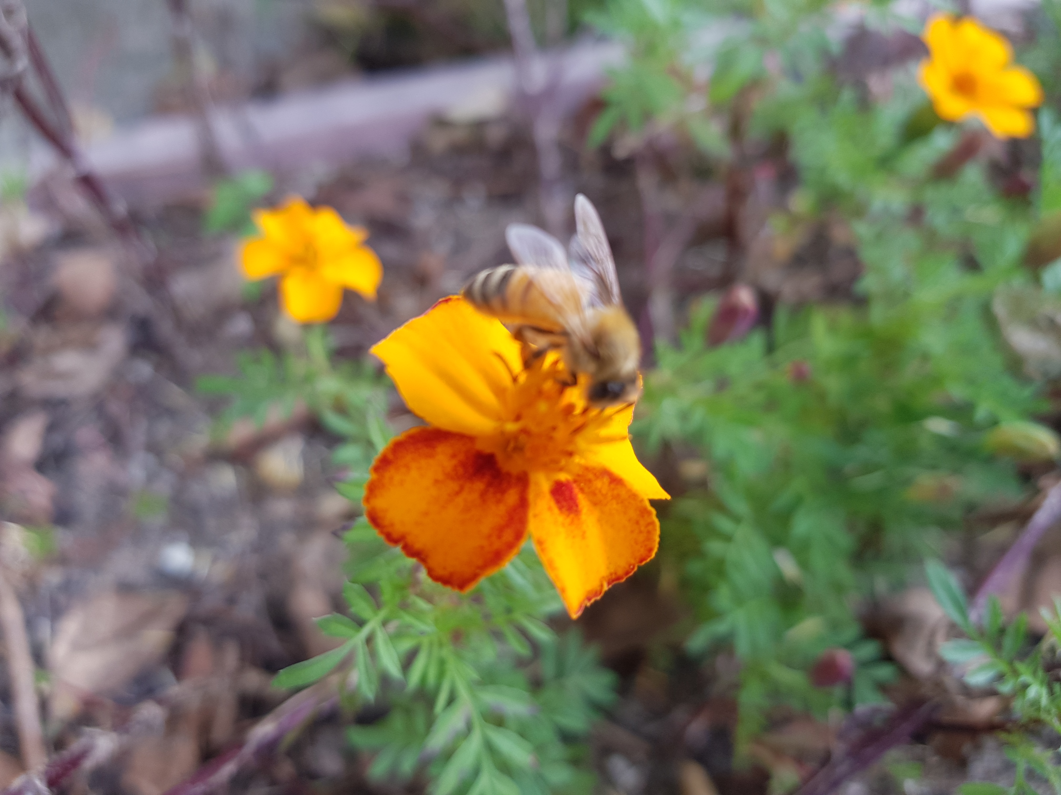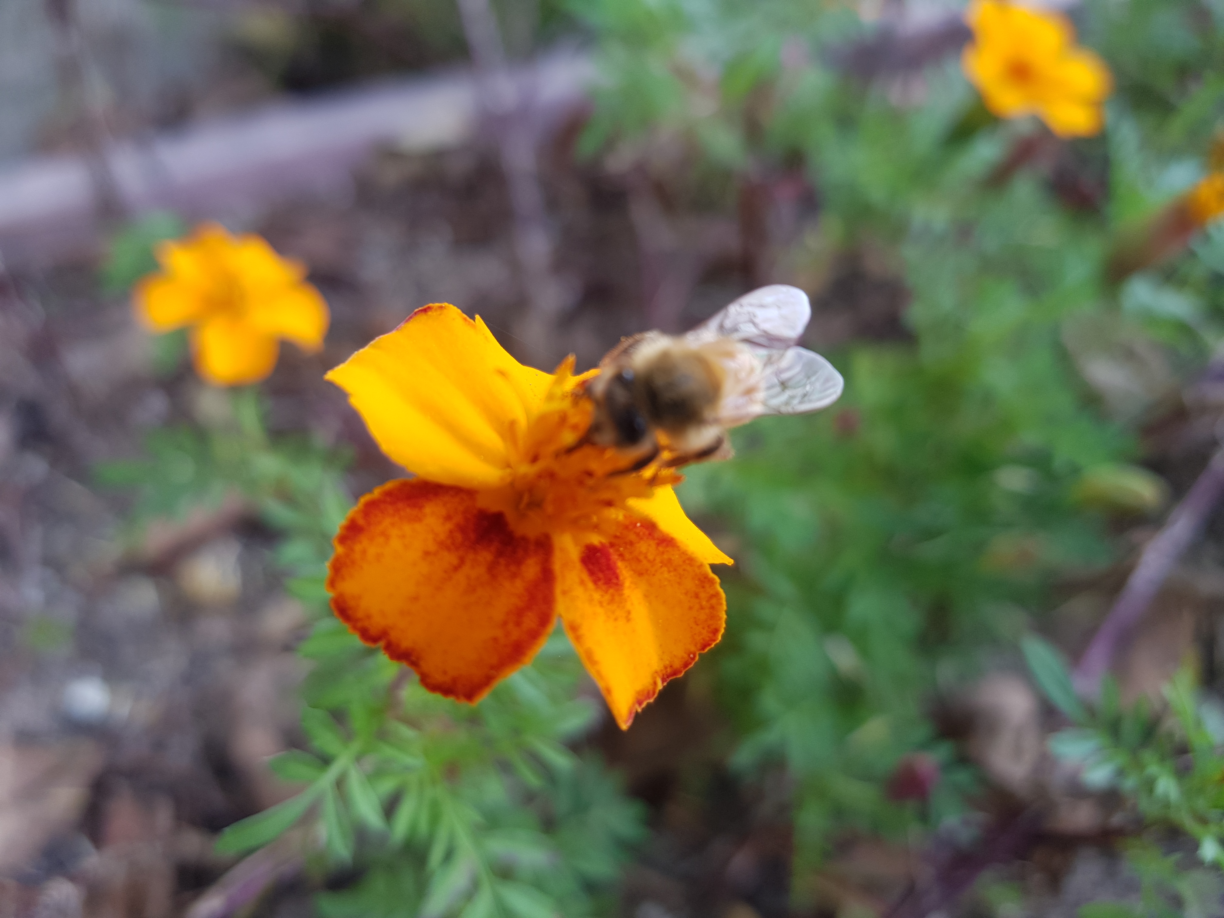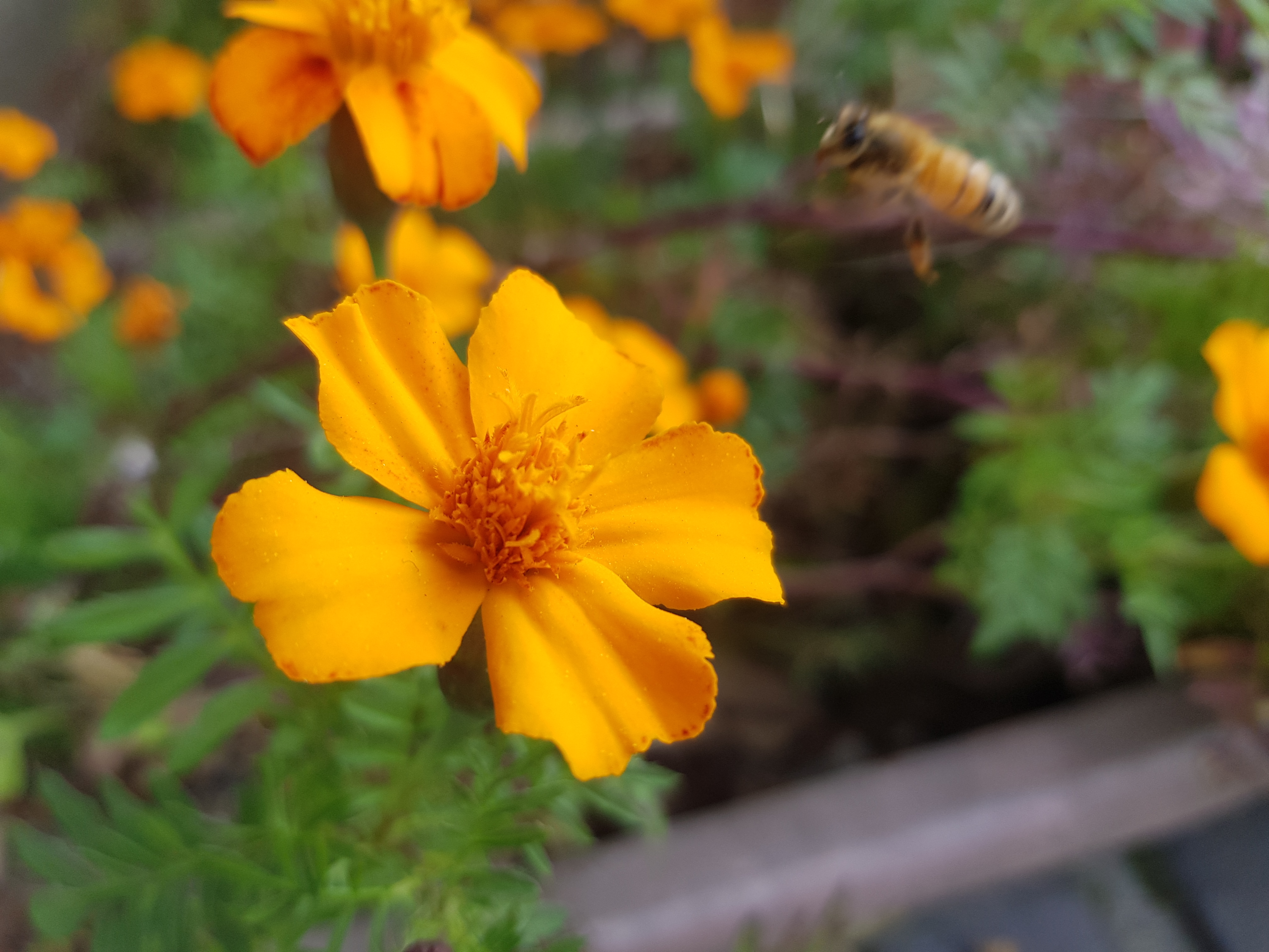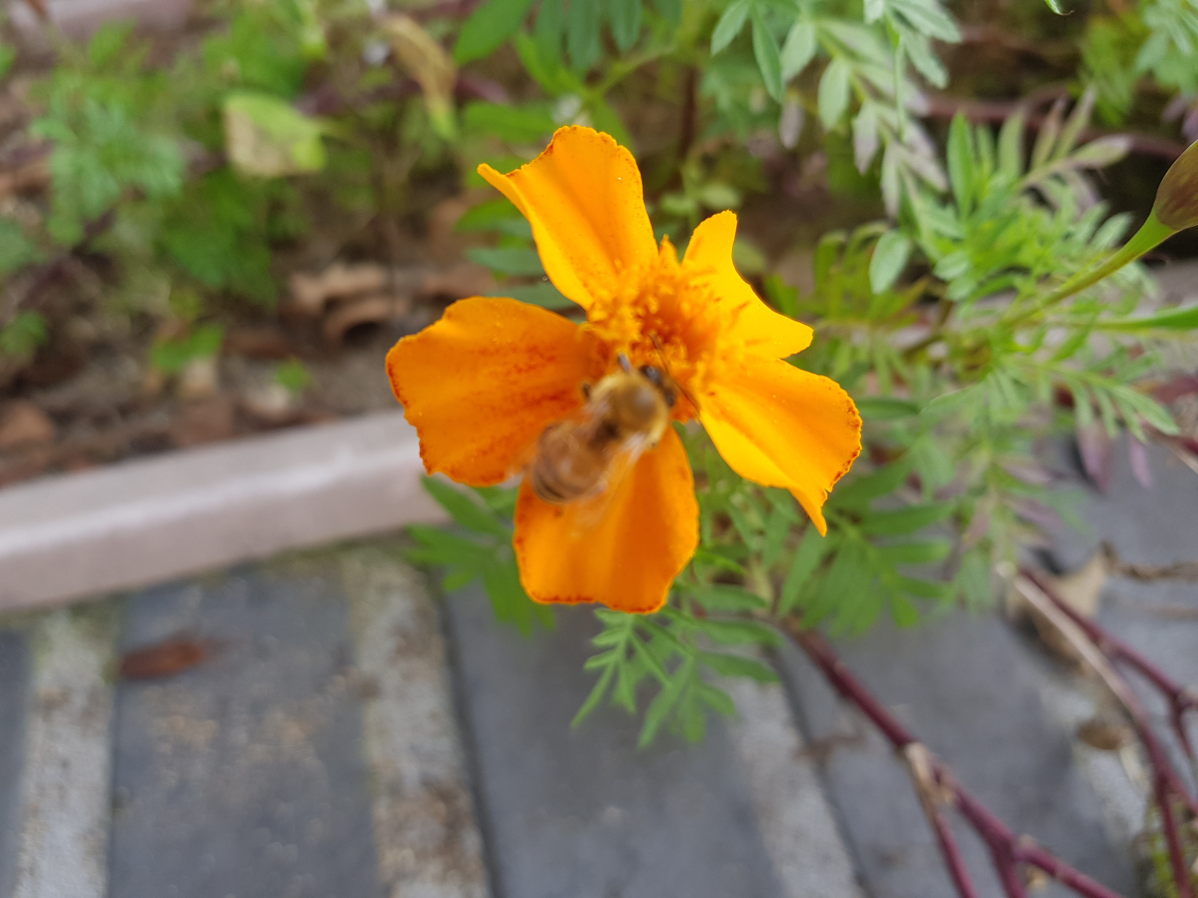 아래 사진은 회사 근처 산책중에 벌들이 주황 코스모스(?) 위에서 바삐 꿀을 따고 있다.-見河-