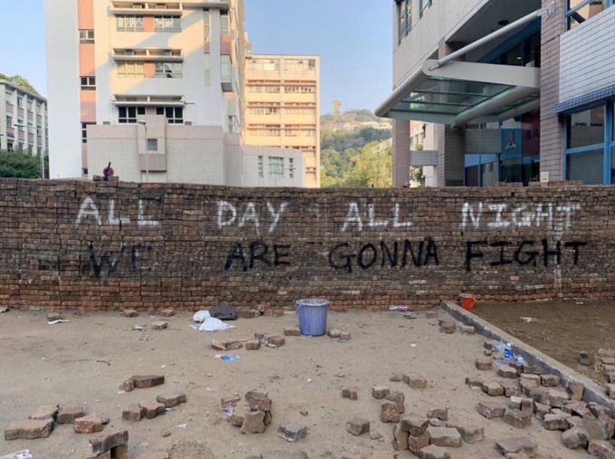 지금 홍콩 경찰들이 기세 등등하게 대학교 안으로 진입하고 학생들을 체포하는 행동은 문명을 파괴하는 야만스러운 행위고, 참혹한 역사적 범죄이다. 홍콩 사람들은 영원히 잊지 않을 것이고, 영원히 용서하지 못한다! 영화가 아니고, 사진이 아니고 현실이다.
