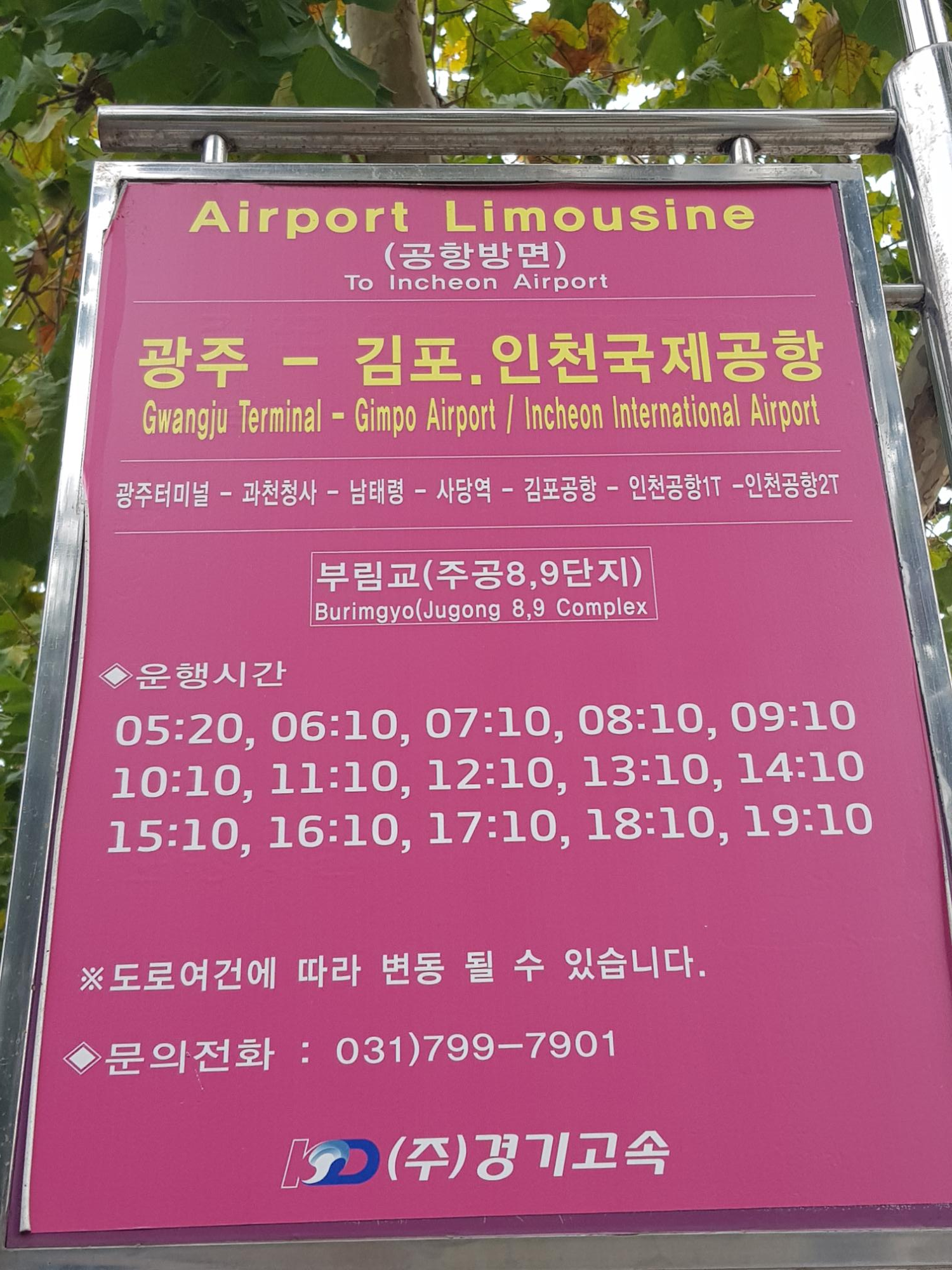 여기서 타면 김포까지 1시간, 인천공항까지 2시간 소요. 과천 출발은 교통카드나 신용카드로 결제하는데, 김포나 인천공항에서 돌아 올 때는 정해진 승차구역에서 표를 끊어야 함.