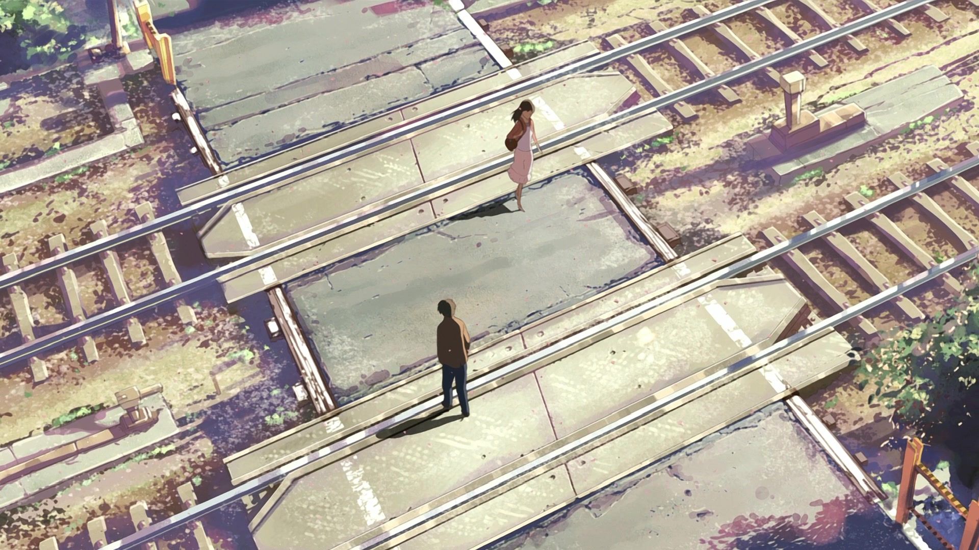 벚꽃잎이 떨어지는 속도, 초속 5cm. 아주 느린 속도였지만, 처음에는 그 정도로 충분했다. 아카리와 다카키 두 사람은 같은 학교에 다녔고, 원하기만 한다면 언제든 만날 수 있는 가까운 거리에 살았다. 서로를 향해 초속 5cm 정도로만 나아가도, 그들은 언제든 서로에게 닿을 수 있었다. 그래서 초속 5cm라는 말은, 벚꽃잎에 대한 시적인 표현이기도 하면서, 그만큼 가까웠던 그들 사이의 거리를 은유적으로 표현한 것이다.