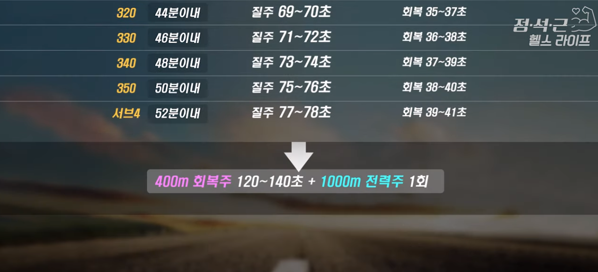 40분이내 질주 66~65초× 회복 35~33초 서브3