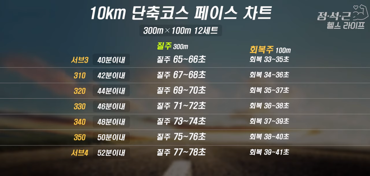 40분이내 질주 66~65초× 회복 35~33초 서브3